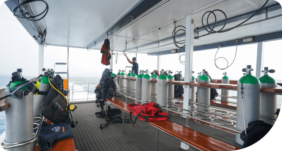 เรือดำน้ำของเราได้รับการปรับปรุงใหม่อย่างสมบูรณ์ในช่วงฤดูร้อนของปี 2022 และสอดคล้องกับมาตรฐานความปลอดภัยสำหรับการเดินทางที่สะดวกสบายและปลอดภัยของคุณ เรือเป็นอุปกรณ์ที่มีอุปกรณ์ดำน้ำที่จำเป็นทั้งหมดซึ่งได้รับการรับรอง